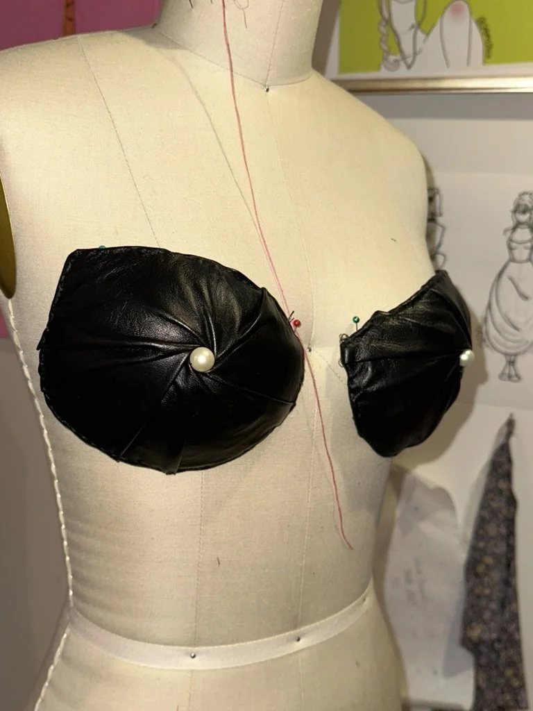 red leather heart bag with hand cut fringe, cotton twill lining and 2 snap closeures. See how I made it on tiktok!